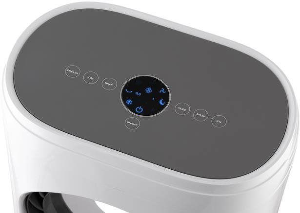 A léghűtőt kényelmesen vezérelheti a kezelőpanel vagy a távirányító segítségével. Minden funkciónak saját gombja van, így a kezelés nagyon egyszerű és intuitív. Beállíthatja a légáramlás intenzitását, a forgást, az időzítőt vagy a működési módot. A kiválasztott értékeket az átlátható LED-kijelzőn ellenőrizheti.